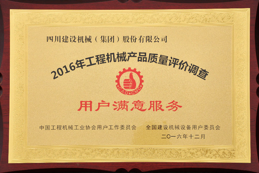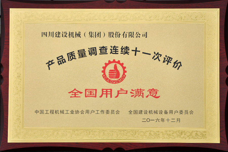 2016年全國用戶滿意產(chǎn)品評價(jià)測評結(jié)果公布,四川建設(shè)機(jī)械(集團(tuán))股份有限公司憑借良好的產(chǎn)品和服務(wù)質(zhì)量獲得全國用戶的較高評價(jià),榮獲了“全國塔機(jī)用戶滿意十強(qiáng)”企業(yè);獲得產(chǎn)品質(zhì)量調(diào)查連續(xù)十一次評價(jià)“全國用戶滿意”企業(yè);公司生產(chǎn)的C7022、C7050、C7030、P7527塔式起重機(jī)以及SC200/200W施工升降機(jī)被評為“全國用戶滿意產(chǎn)品”;同時(shí)獲得“用戶滿意服務(wù)”獎(jiǎng);1989年至今川建已連續(xù)十一次獲得全國用戶滿意獎(jiǎng),得到了業(yè)內(nèi)用戶的高度認(rèn)可。