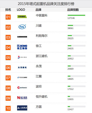 榜單是基于2015年中國路面機械網(wǎng)及工程機械電商網(wǎng)海量用戶對其平臺內(nèi)所有塔式起重機品牌、產(chǎn)品的瀏覽及在線詢價次數(shù)而生成的。該榜單能在一定程度上體現(xiàn)行業(yè)用戶對品牌及產(chǎn)品的偏好,同時在一定范圍內(nèi)反映企業(yè)品牌和產(chǎn)品在用戶群體中的影響力和覆蓋程度。