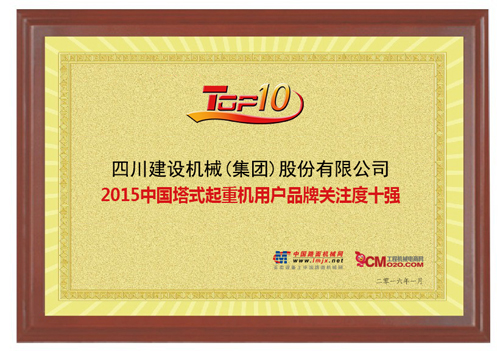 近日,中國路面機械網(wǎng)及工程機械電商網(wǎng)發(fā)布“2015中國工程機械用戶品牌關(guān)注度排行榜”,四川建設(shè)機械(集團)股份有限公司進入“2015中國塔式起重機用戶品牌關(guān)注度排行榜”前十強。