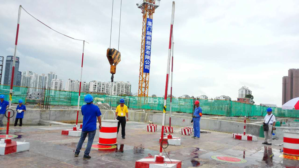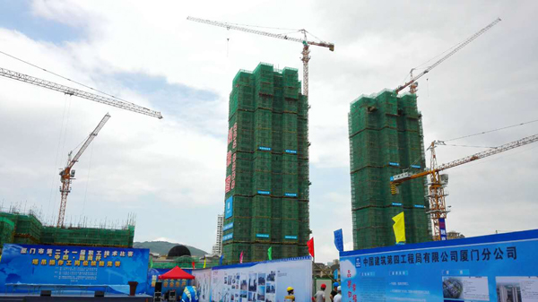 本次比賽地點設(shè)在海滄生態(tài)花園項目施工部。該項目共有川建8臺塔機參與施工,其中6臺C6013塔機、2臺C6010塔機。該項目為民建住宅,建筑面積約20萬平方米,為 46層超高層住宅,最終塔機使用高度將達(dá)到150米。本次比賽該項目8臺塔機作為比賽專用塔機,其中5臺塔機用于比賽,另有3臺塔機作為備用。